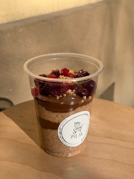 Pilja je ovaj delikates je napravila od prirodnih sastojaka poput urmi, kakaa, badema, indijskih oraha, meda i sočnih brusnica. Toliiko sločnih i finih da ce te neke od njih naći i u samom kolačiću 🙂